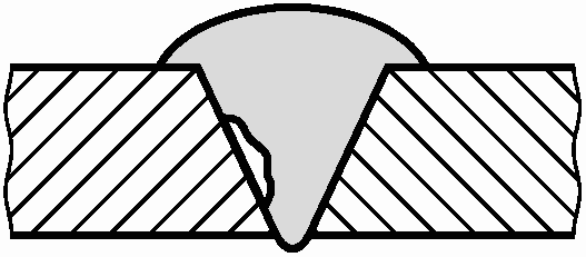 4. Непровар корня ![]() | Впадина, вызванная неполным заполнением расплавом корня шва, например, из-за: - малого угла скоса кромки; - незначительного зазора у основания; - толстого присадочного прутка; - слабого сварочного усилия | То же |