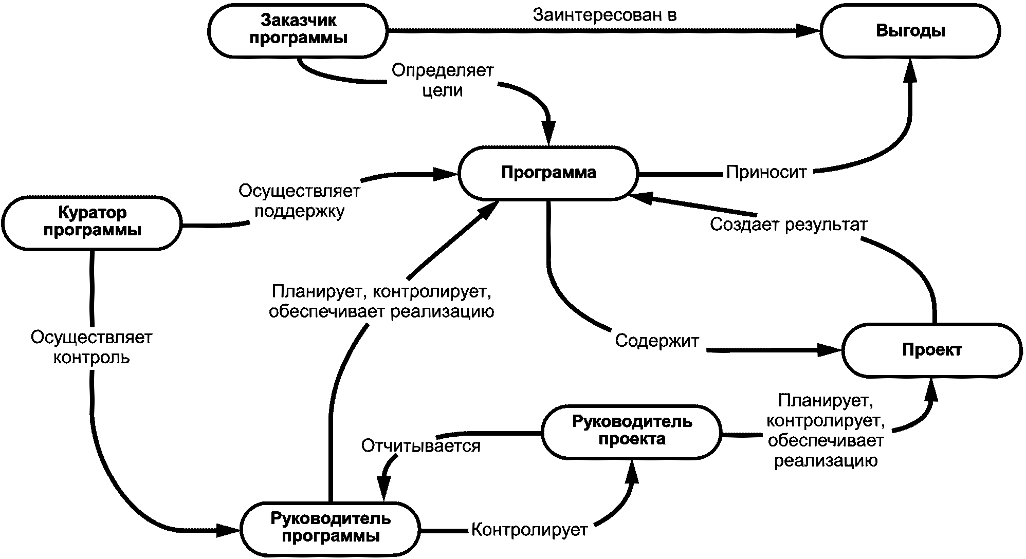 Схема, иллюстрирующая основные понятия менеджмента программы и их взаимосвязь, приведена в