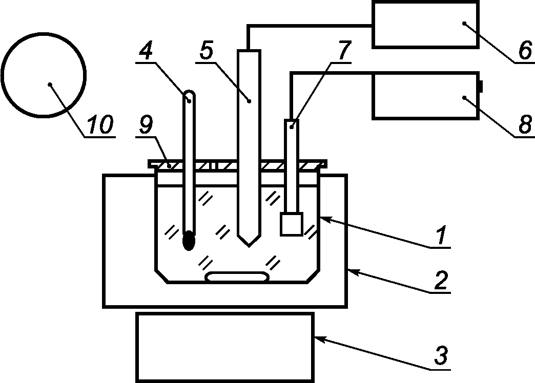 3 - магнитная мешалка; 4 - контрольный термометр;