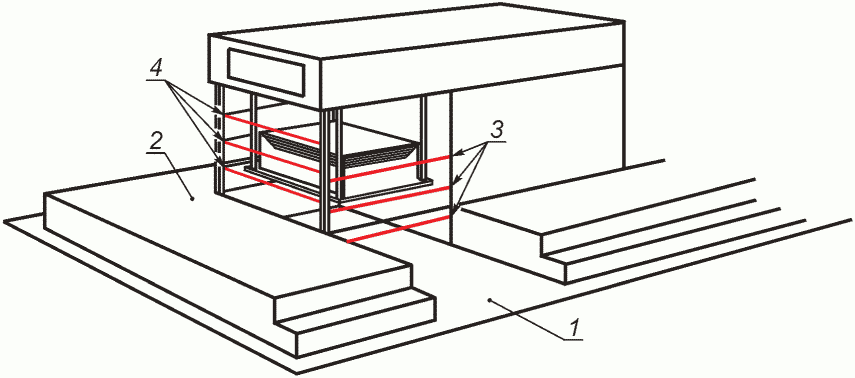 3 - двигатель; 4 - ограждение открыто; Lsr - безопасное