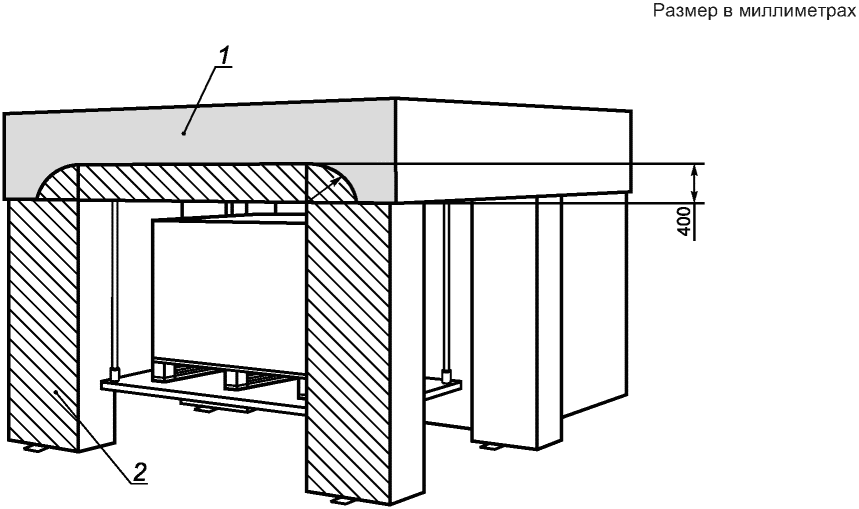 ДГ, поясняющее расстояния и размеры, относящиеся к требованиям для блокирующих ограждений с фиксацией [ИСО 12643-1 (подпункт 6.5.5, рисунок 9)]