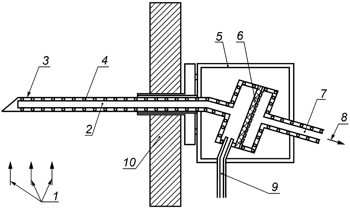 1 - отходящий газ; 2 - зонд; 3 - трубка для подачи