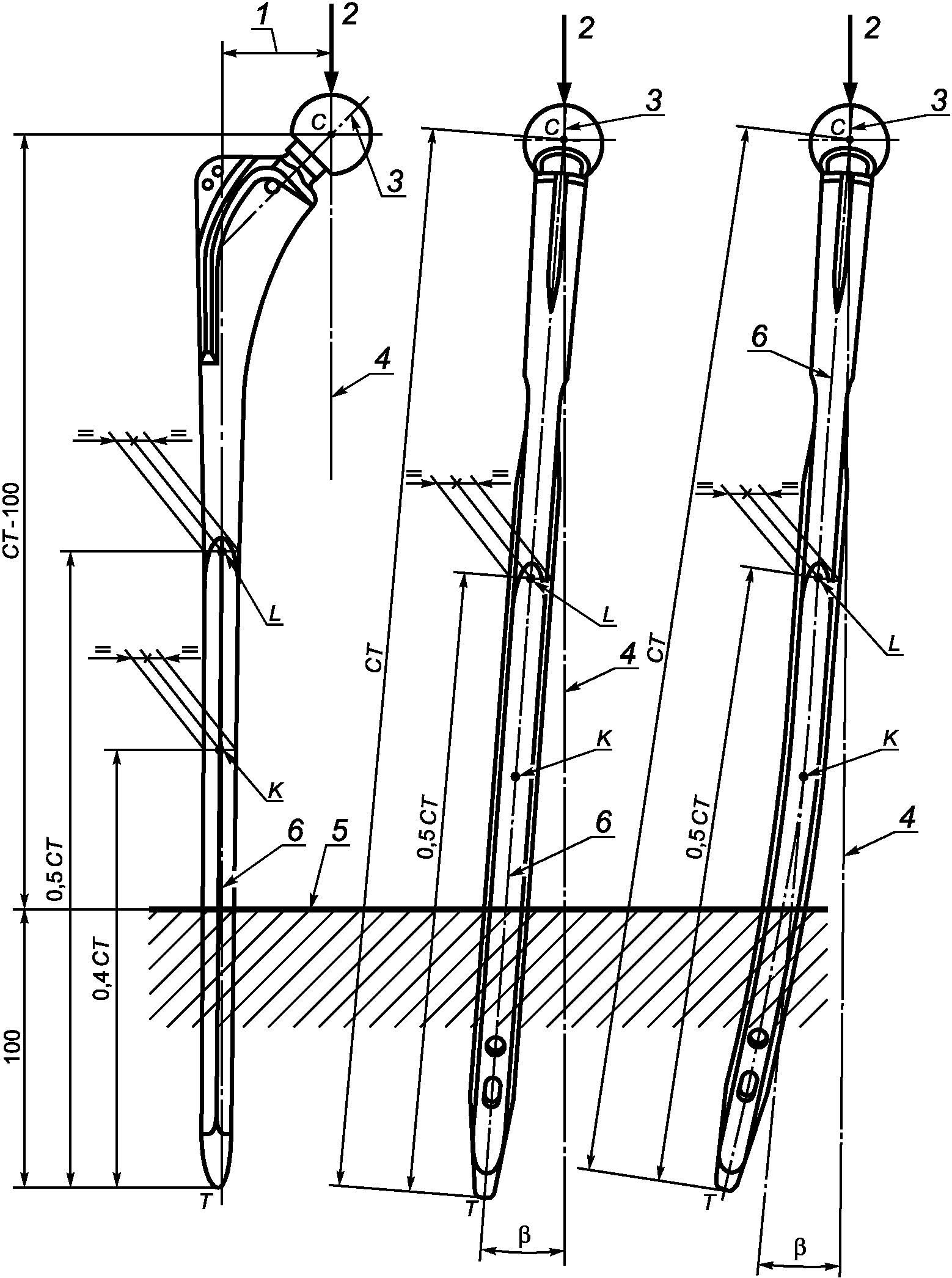 Примечание - Размер CT - это расстояние между центром бедренной головки C и самой дистальной точкой ножки T.