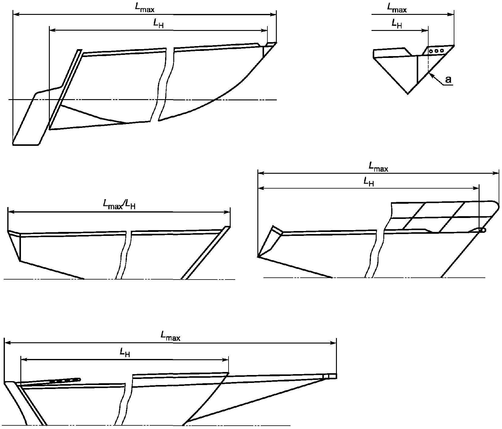 Примечание 2. На судах с закругленной или острой кормой или в случае транцевой кормы, которая меньше половины наибольшей ширины судна, за ширину транца BT принимается наибольшая ширина по линии борта или ниже его в кормовой части судна на участке, равном 1/4 длины корпуса.