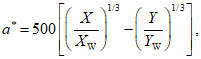 3.2.5 равноконтрастное цветовое пространство МКО 1976 L*a*b*: Трехмерное, приблизительно равноконтрастное цветовое пространство, определенное МКО в 1976 году. Примечание - Пространство является результатом построения в прямоугольной системе координат L*, a*, b*, которые определяются по формулам: ![]() ![]() ![]() ![]() ![]() где (15)Изменения для низких световых уровней: для любой координаты цвета Q = X, Y, Z в приведенном выше выражении для a*, b*, заменять на с каждый раз, когда ![]() Насыщенность цвета определяется как: ![]() Цветовой тон определяется как: hab = arctg(b*/a*). (16) Разность цветовых тонов определяется как: ![]() Чистота цвета не определена для равноконтрастного цветового пространства МКО 1976 L*a*b*. | en | CIELAB 1976 L*, a*, b* uniform colour space |