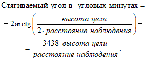 Примечание - Расчет на проектном расстоянии наблюдения (20) (21)Размерностью для стягиваемого угла являются градусы (°), которые делятся на угловые минуты (') и угловые секунды ("): 1° = 60' = 3600". Учитывая размерность объекта h и расстояние наблюдения z, стягиваемый угол ![]() | en | angular subtense |