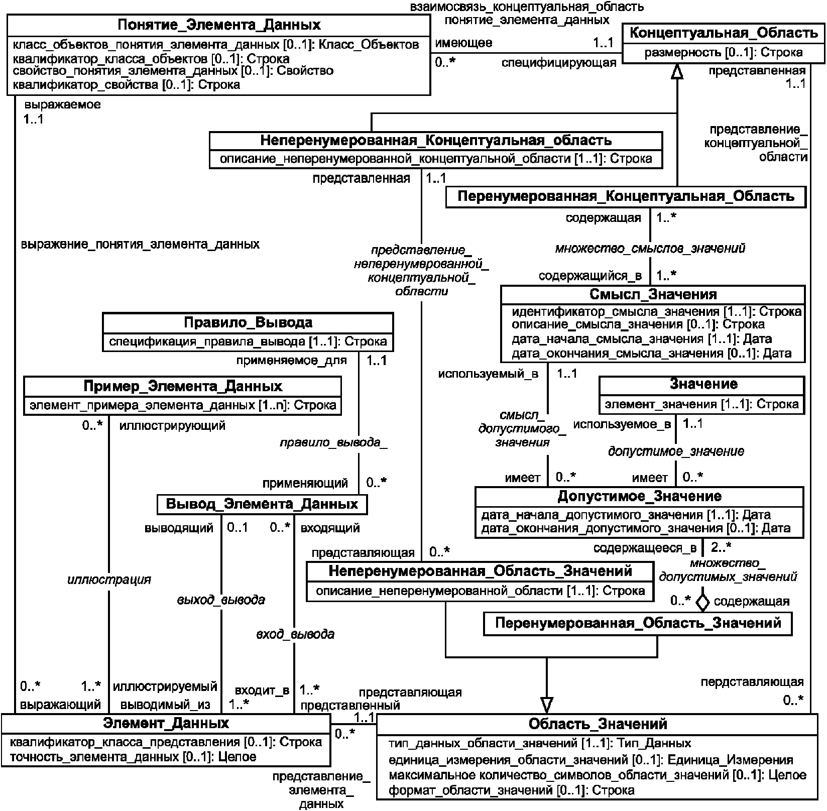 Комментарий: | | В метамодели тип данных является атрибутом области значений, а не непосредственно элемента данных | |