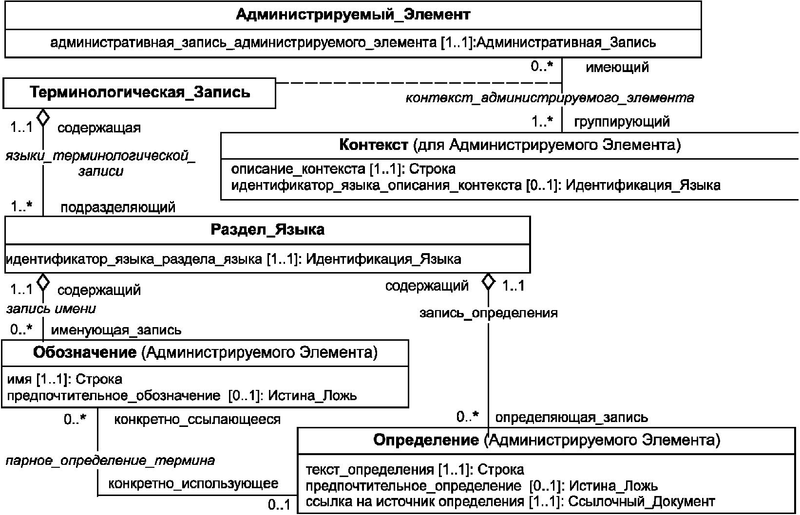 1.1). В нем также специфицированы основные атрибуты, которые требуются для описания элементов метаданных и которые могут быть использованы в ситуациях, когда полная система регистрации метаданных не применима (например, в спецификациях других международных стандартов) (см.