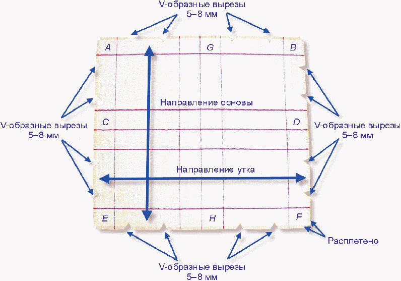 - размер образцов усадки шерсти ..... | 34x35 см (приблизительно) с маркерными нитями вдоль краев. |