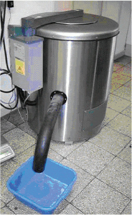 3.1.5 отжимная центрифуга (spin extractor): Отдельный прибор удаления воды, в котором вода удаляется из тканей путем воздействия центробежных сил (отжим вращением).
