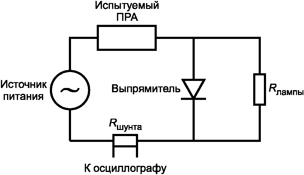 Амплитудное значение тока лампы определяют с помощью осциллографа, резистор R1 вставляют в заземленную часть схемы (см. рисунок 1).