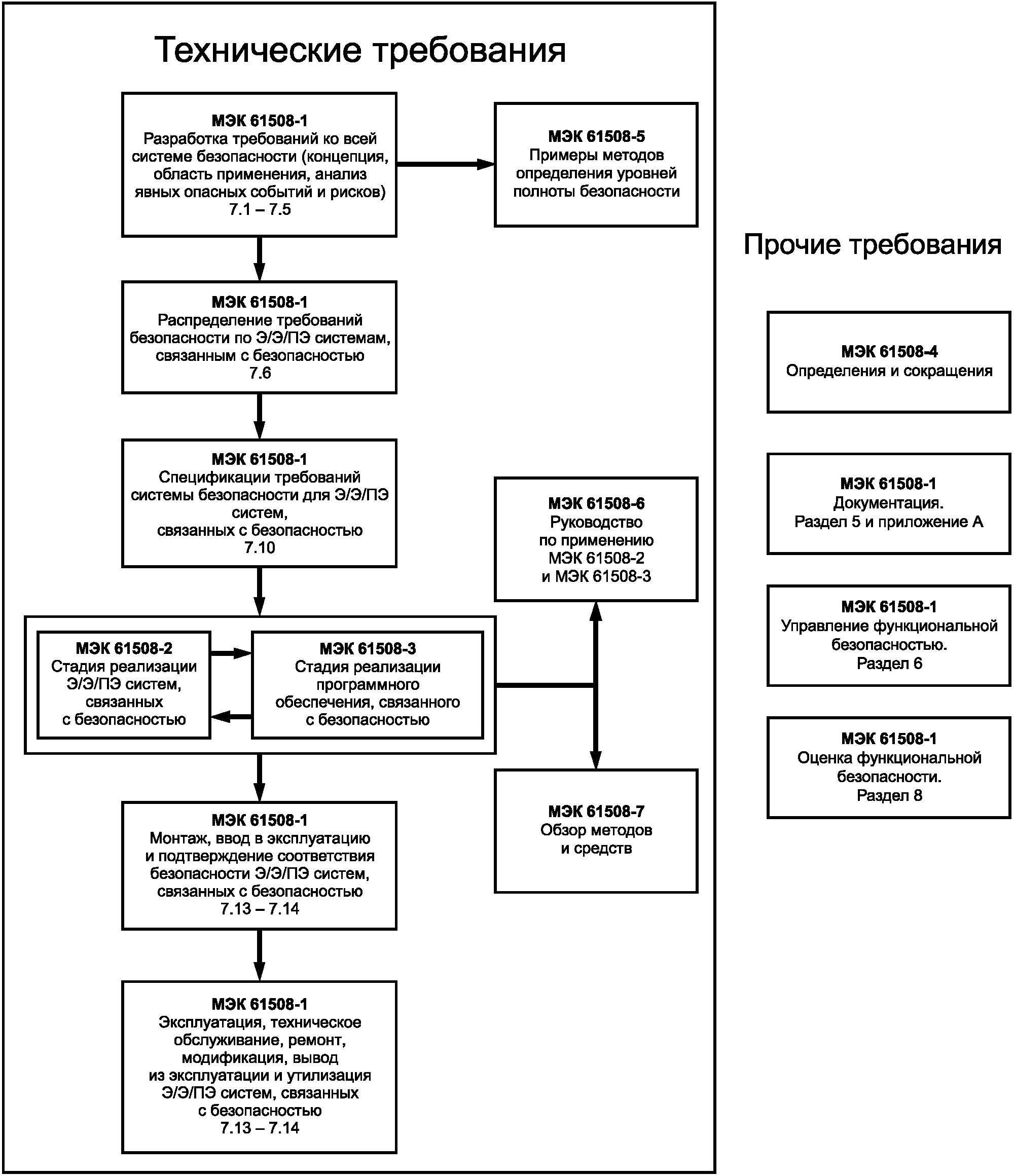 МЭК 61508-1:2010 | IDT | ГОСТ Р МЭК 61508-1-2012 "Функциональная безопасность систем электрических, электронных, программируемых электронных, связанных с безопасностью. Часть 1. Общие требования" |