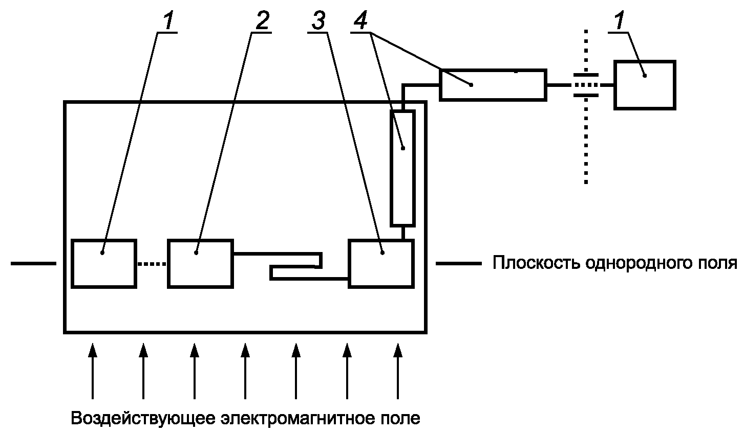 1 - ИО; 2 - объект испытаний; 3 - электромагнитные