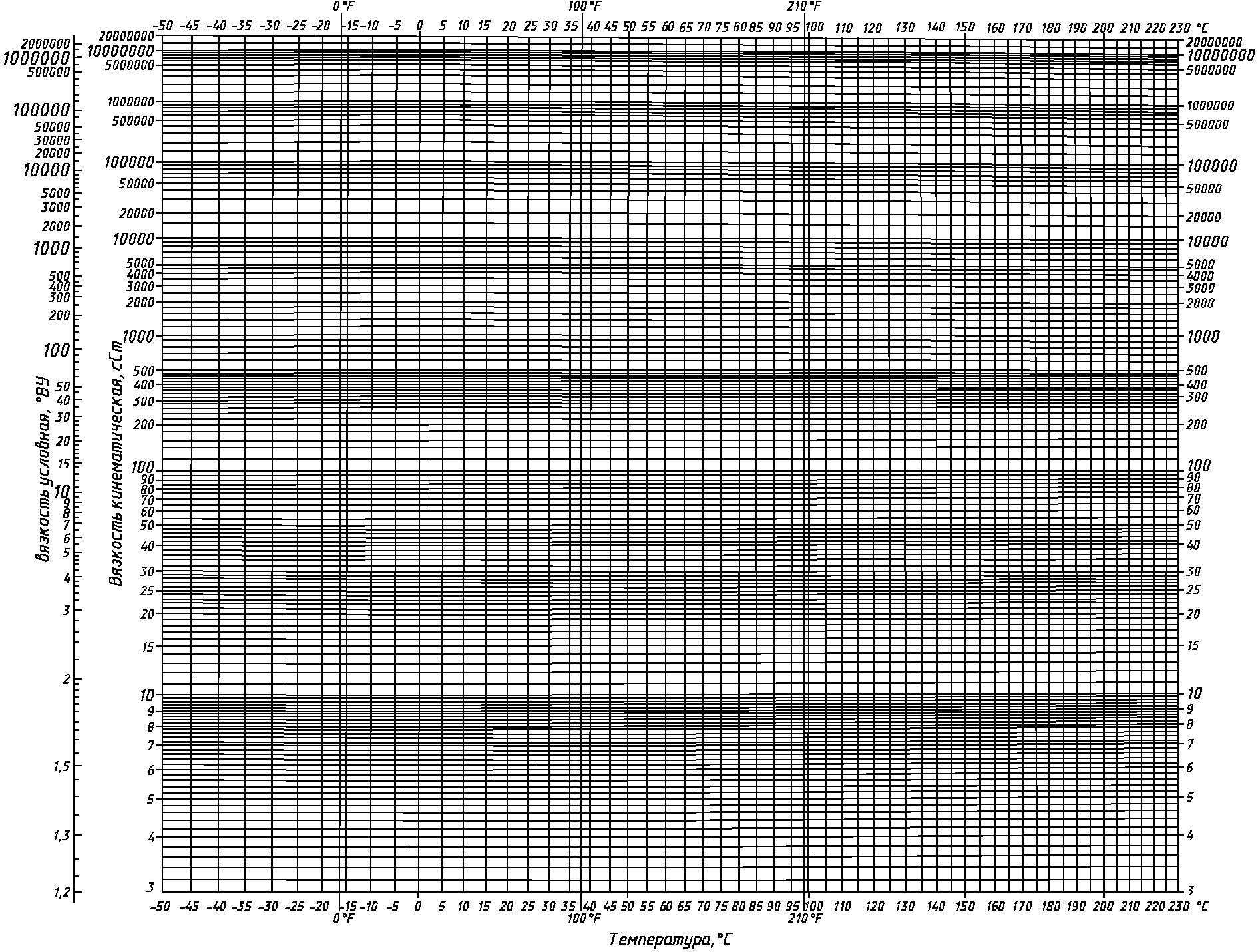 НОМОГРАММА ДЛЯ ОПРЕДЕЛЕНИЯ ТЕМПЕРАТУРНЫХ КРИВЫХ ВЯЗКОСТИ