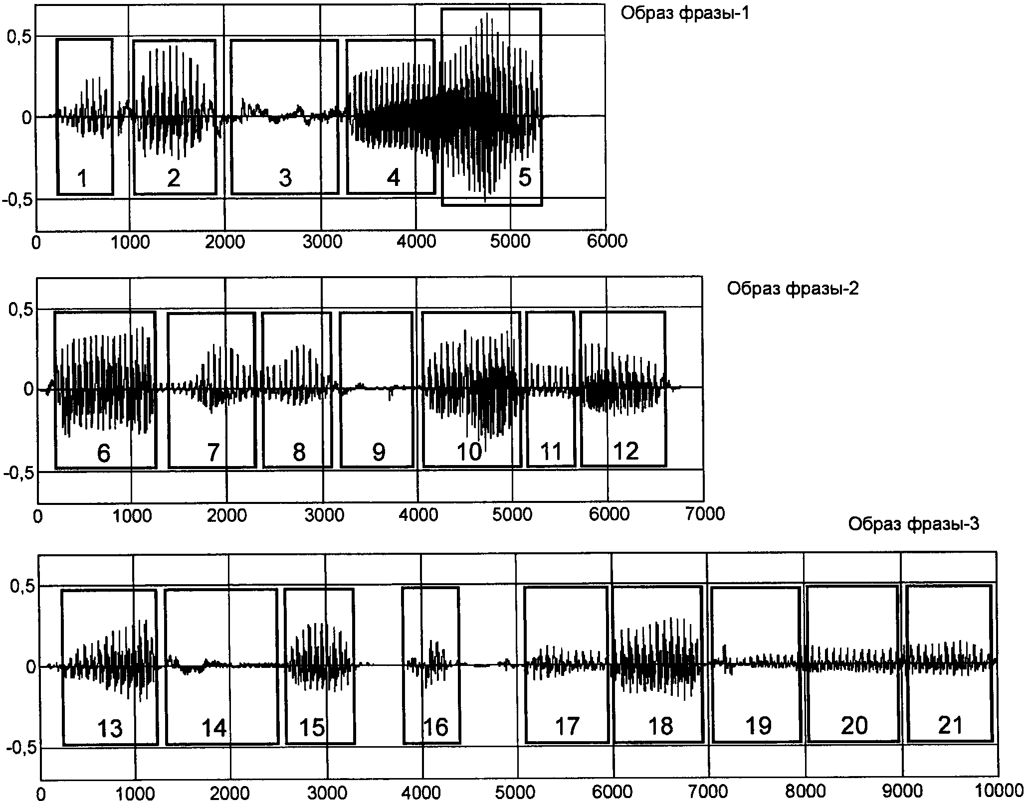 Каждый пример синтетического голосового образа, собранный из фонем 1, 2, 7, 9, 20, 21, формируется из разных комбинаций примеров исходных голосовых образов.