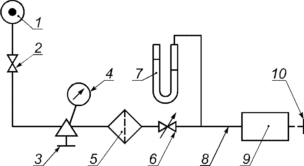 7 - жидкостный манометр; 8 - соединительные трубы и шланги;