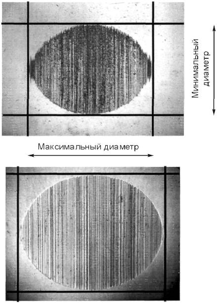После затягивания винта цилиндра, чтобы поместить цилиндр в новое положение для испытания, датчик микрометра следует отодвинуть, а затем опять придвинуть к цилиндру. Проверяют показание микрометра, чтобы убедиться в правильности расположения следа. Снова регулируют положение, если требуется. Если правильное положение подтверждено, отодвигают датчик микрометра от цилиндра.