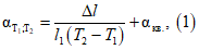 рассчитывается автоматически в пересчетном блоке дилатометра после внесения в него исходных значений по формуле: