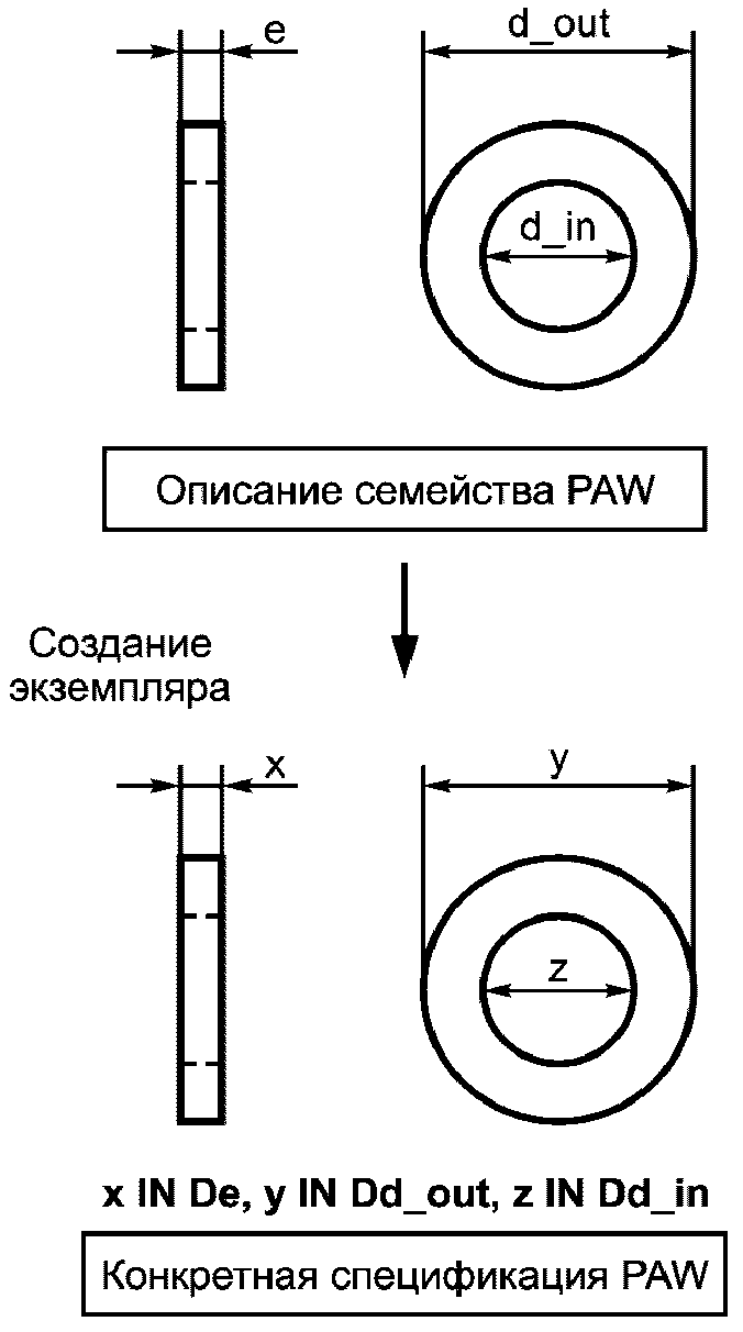 Пример - Для общего семейства винтовых деталей применимым свойством является диаметр резьбы. Эту характеристику следует применять для любого винта.