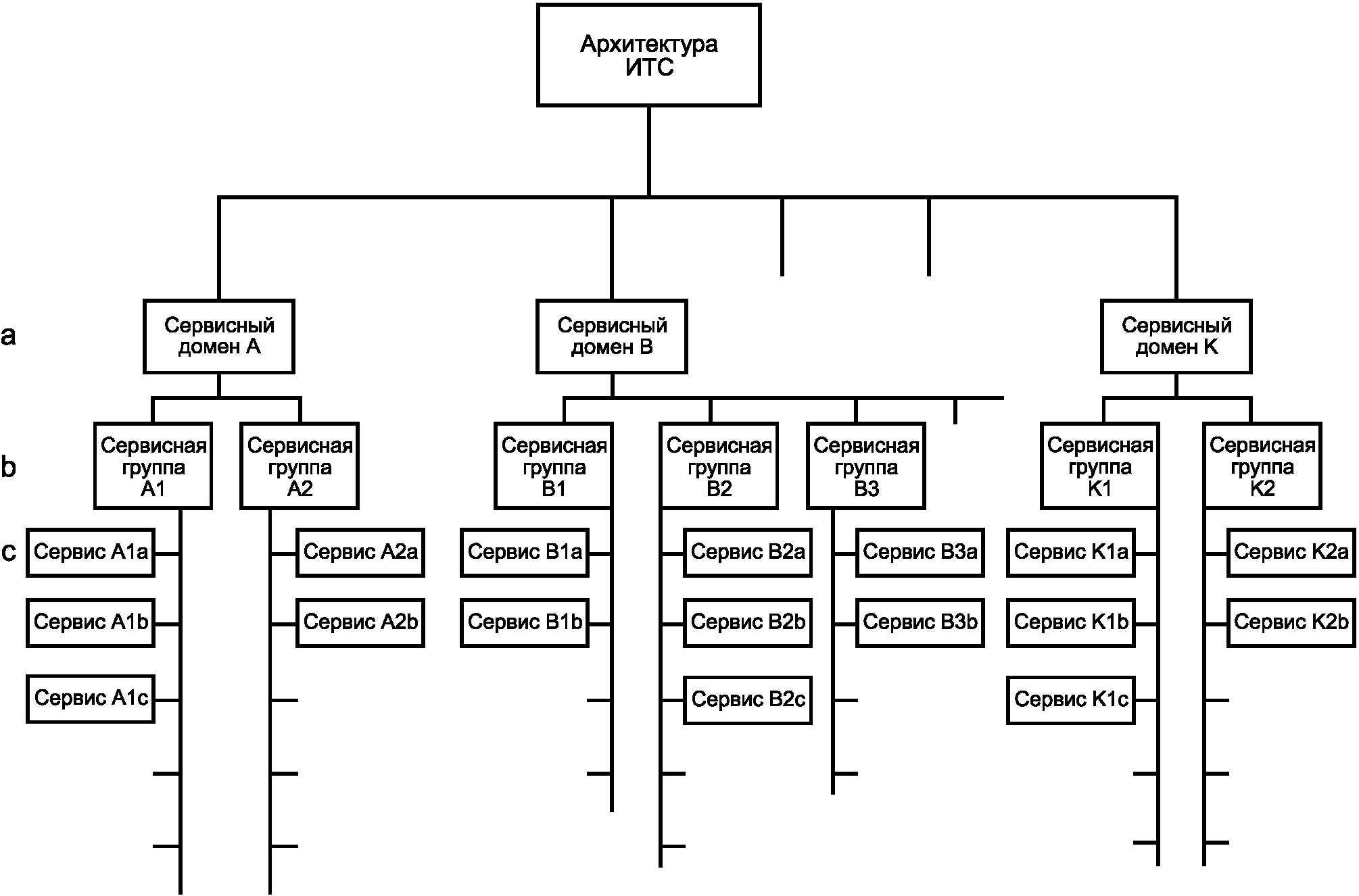 a - специализация сервисных доменов (A, B, C и т.д.)