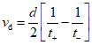 t+ - время прохождения акустического сигнала от преобразователя+ до преобразователя-, с;