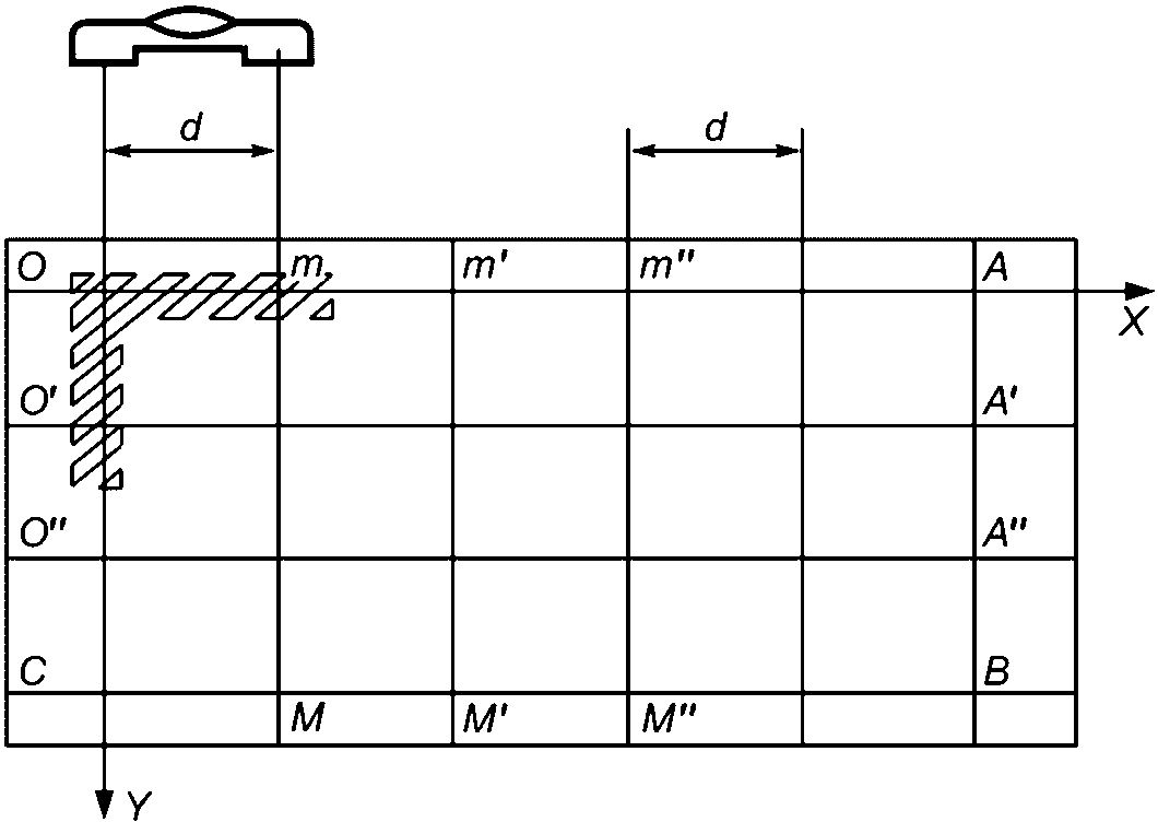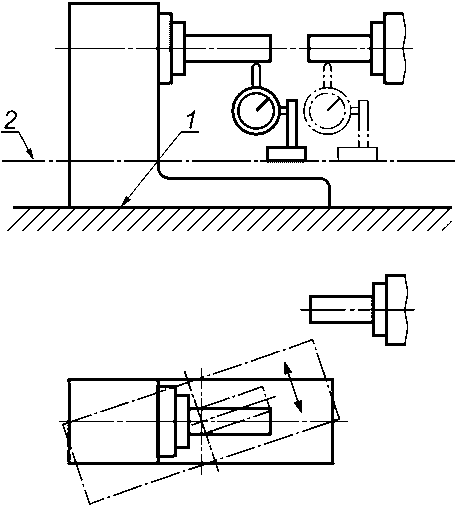 Линии или поверхности, выбранные в качестве базы при измерении, должны быть непосредственно связаны со станком (например, линия центров токарного станка, ось шпинделя сверлильного или расточного станка, направляющие станка и т.п.).