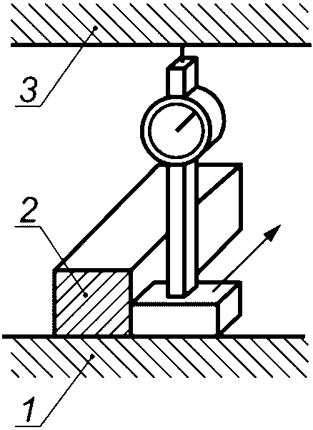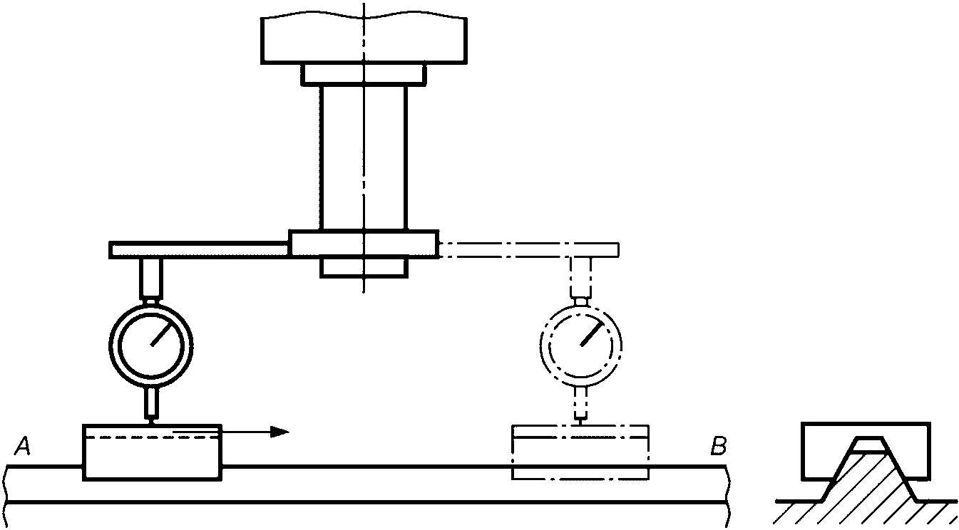 Если линия измерения смещена в поперечном направлении относительно траектории проверяемой точки перемещаемого элемента, то любое угловое смещение перемещаемого элемента приведет к дополнительной погрешности (см.