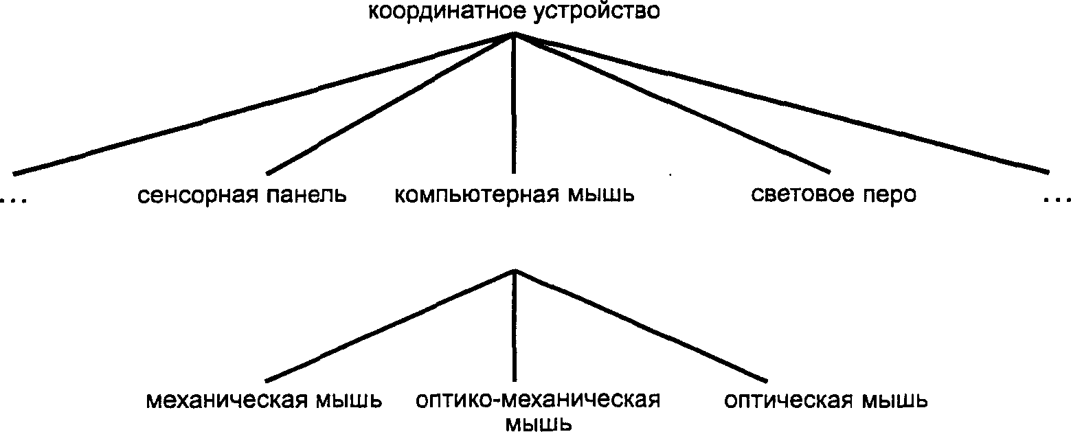 Чем сложнее система понятий, тем целесообразнее прояснить связи между понятиями путем их формального или графического представления. Связи между понятиями могут быть формально представлены в виде перечня. Такое представление, используемое в настоящем стандарте, имеет вид пронумерованного и структурированного отступами перечня с точкой (.) для родовых отношений и тире (-) для партитивных отношений, как это проиллюстрировано ниже: