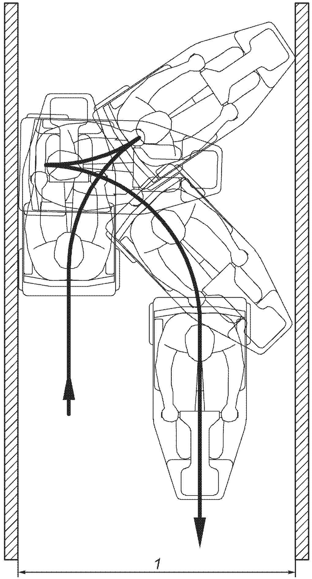 E.10. Необходимая ширина коридора для бокового прохода