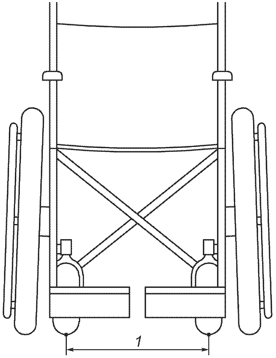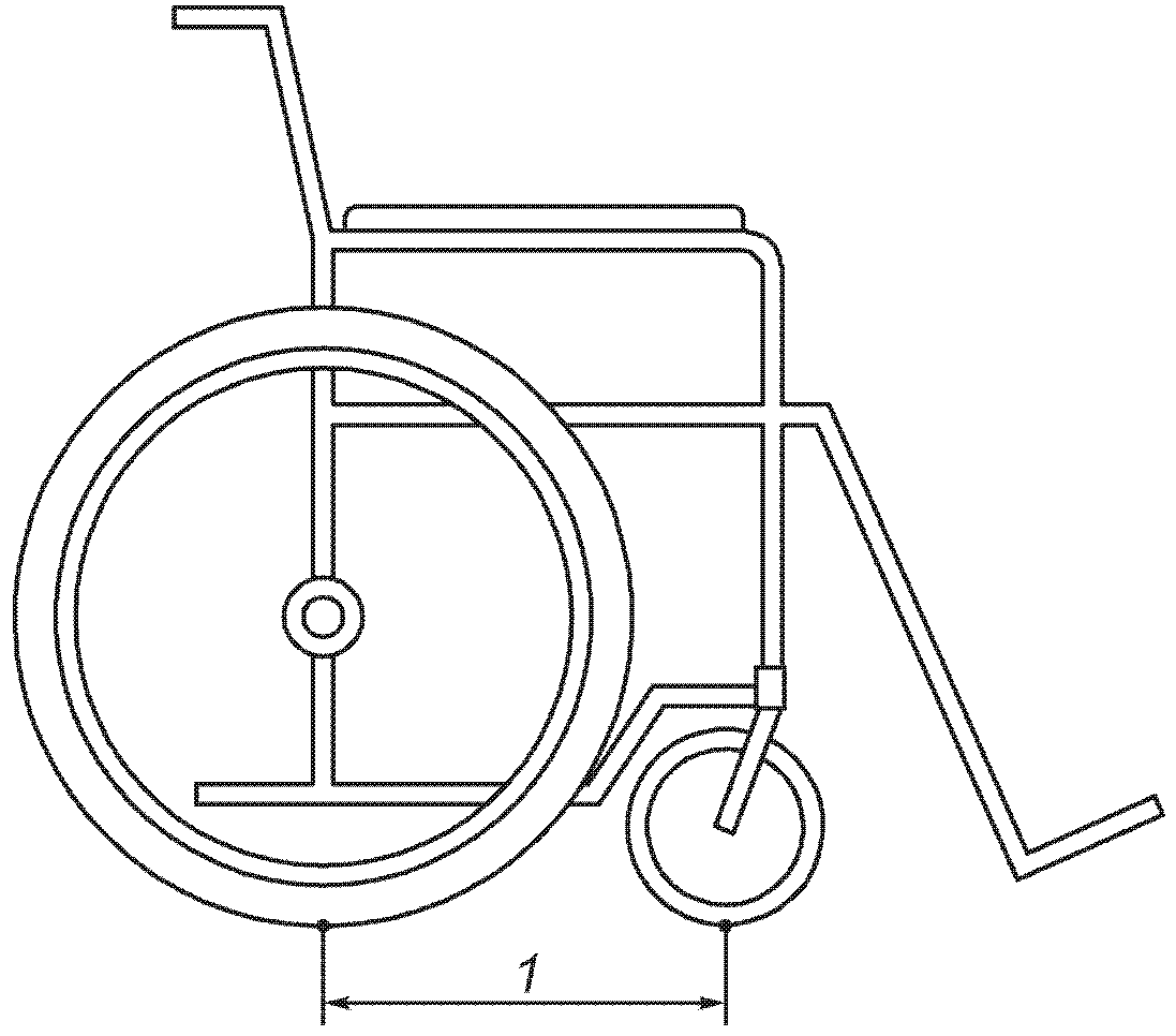 Примечание 1. Положение самоориентирующихся колес не влияет на положение продольной оси кресла-коляски и центральной точки кресла-коляски.