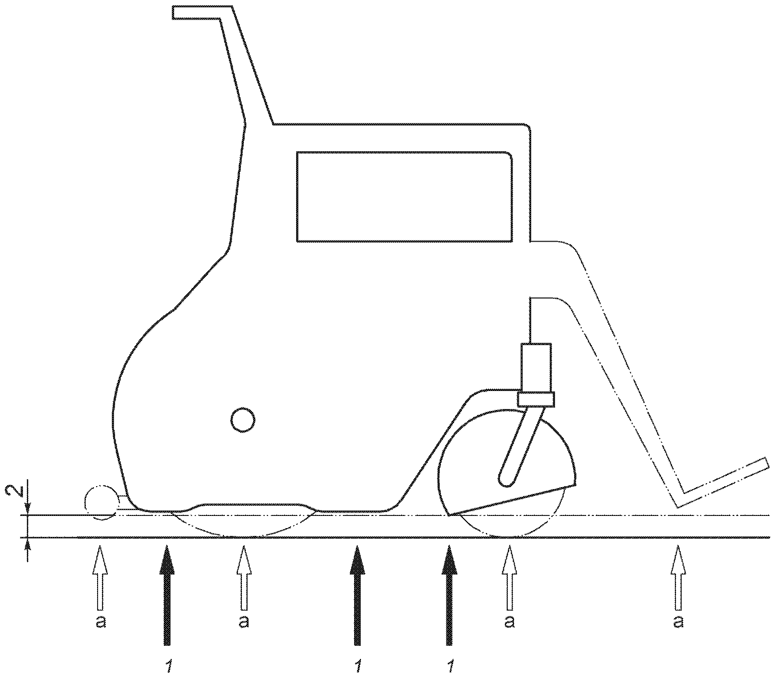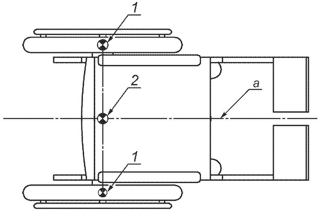 1 - середина колеса; 2 - центральная точка кресла-коляски;