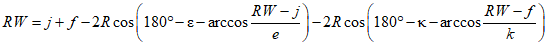 x - расстояние между точкой W и осью рулевых колес.