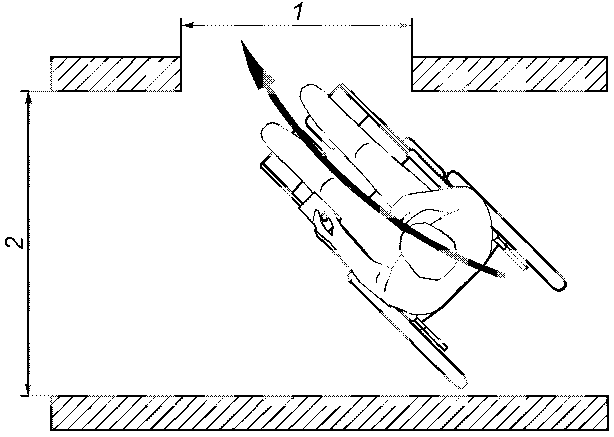Необходимая ширина коридора для бокового прохода нужна, чтобы оценить необходимую площадь при использовании кресла-коляски в повседневной обстановке. Она зависит от ширины бокового прохода и типа кресла-коляски.