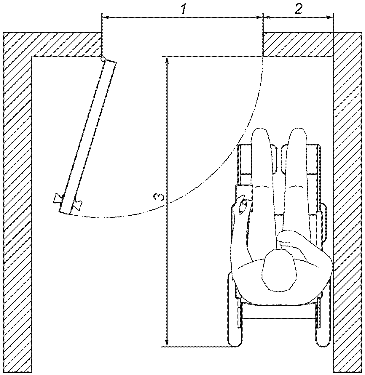 Необходимая глубина дверного проема нужна, чтобы оценить необходимую площадь при использовании кресла-коляски в повседневной обстановке.