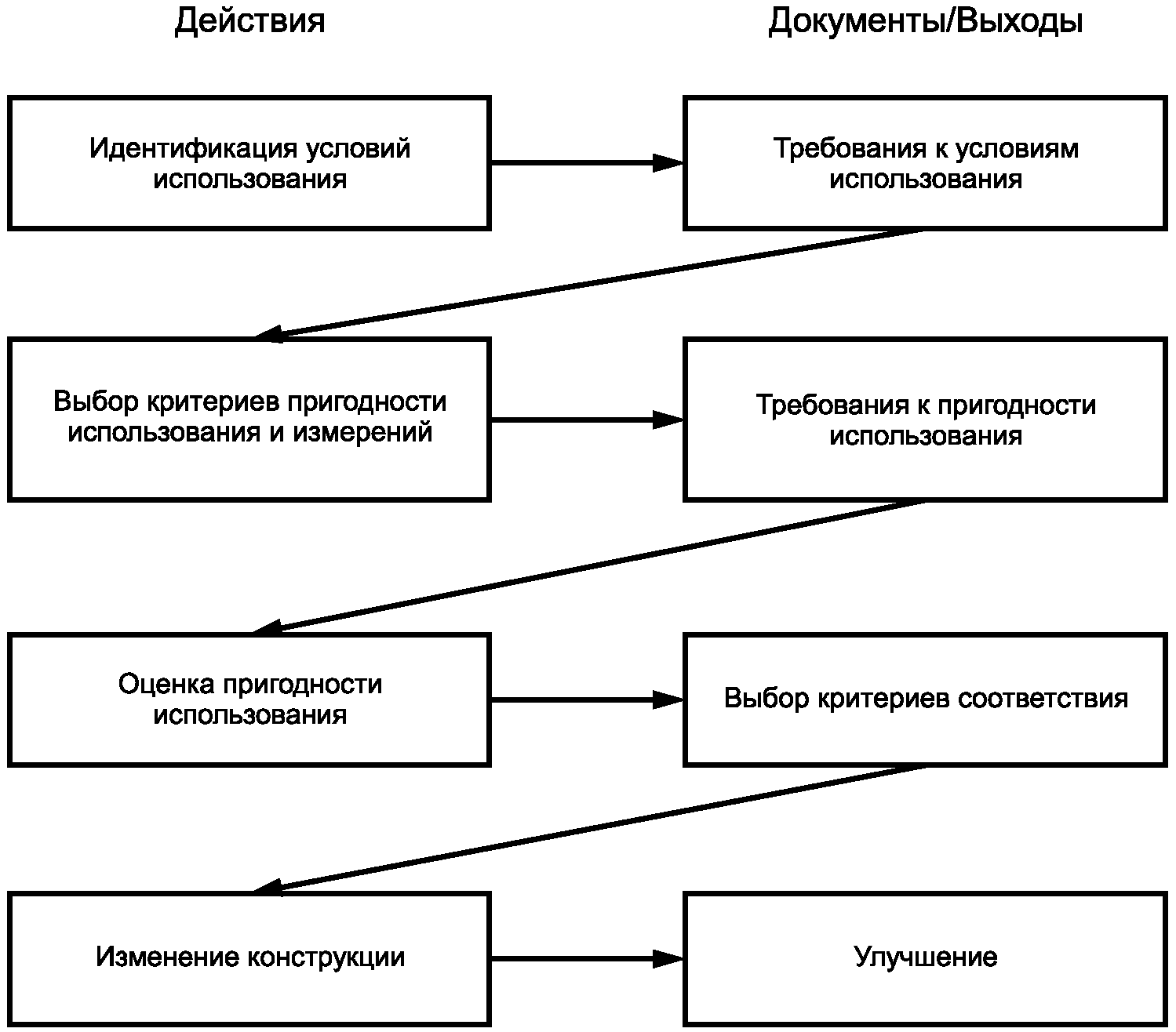 Схема установления пригодности использования определяет компоненты пригодности использования и взаимосвязи между ними.