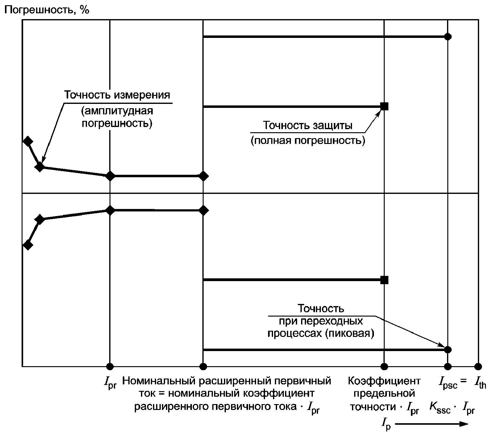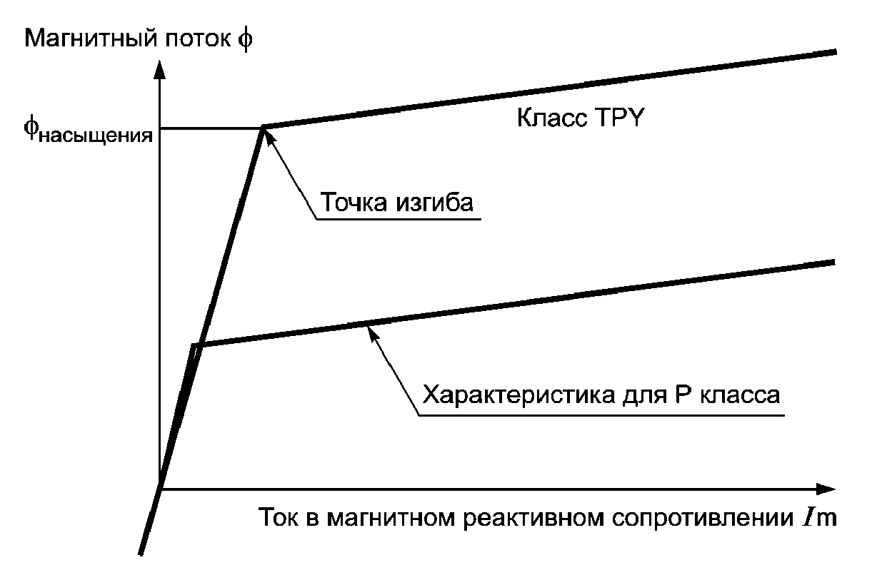 Схема отражает пределы точности многоцелевого ЭТТ (соответствующего требованиям измерения и защиты), который предназначен и для измерения переходных характеристик.