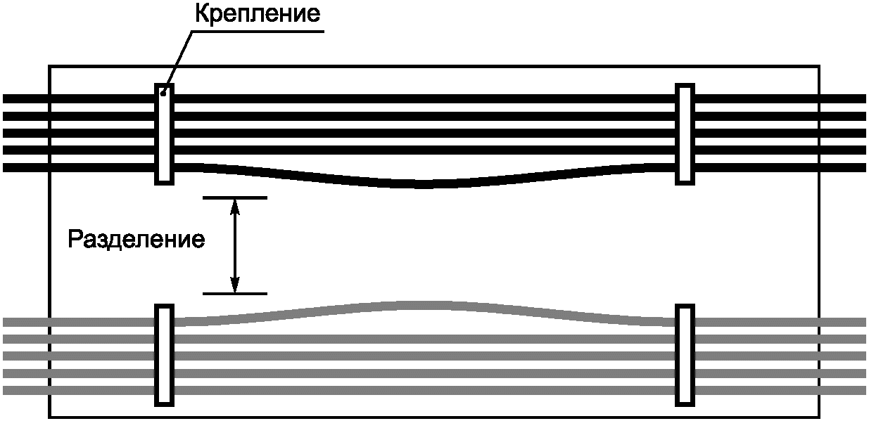 Если металлическая или композитная система электропроводки, разработанная специально для целей электромагнитной совместимости, разделяется для прохода через стену, например, через огнепреградительный барьер, две металлические секции должны быть соединены между собой перемычками с малым сопротивлением, например плетеными или сетчатыми полосками.