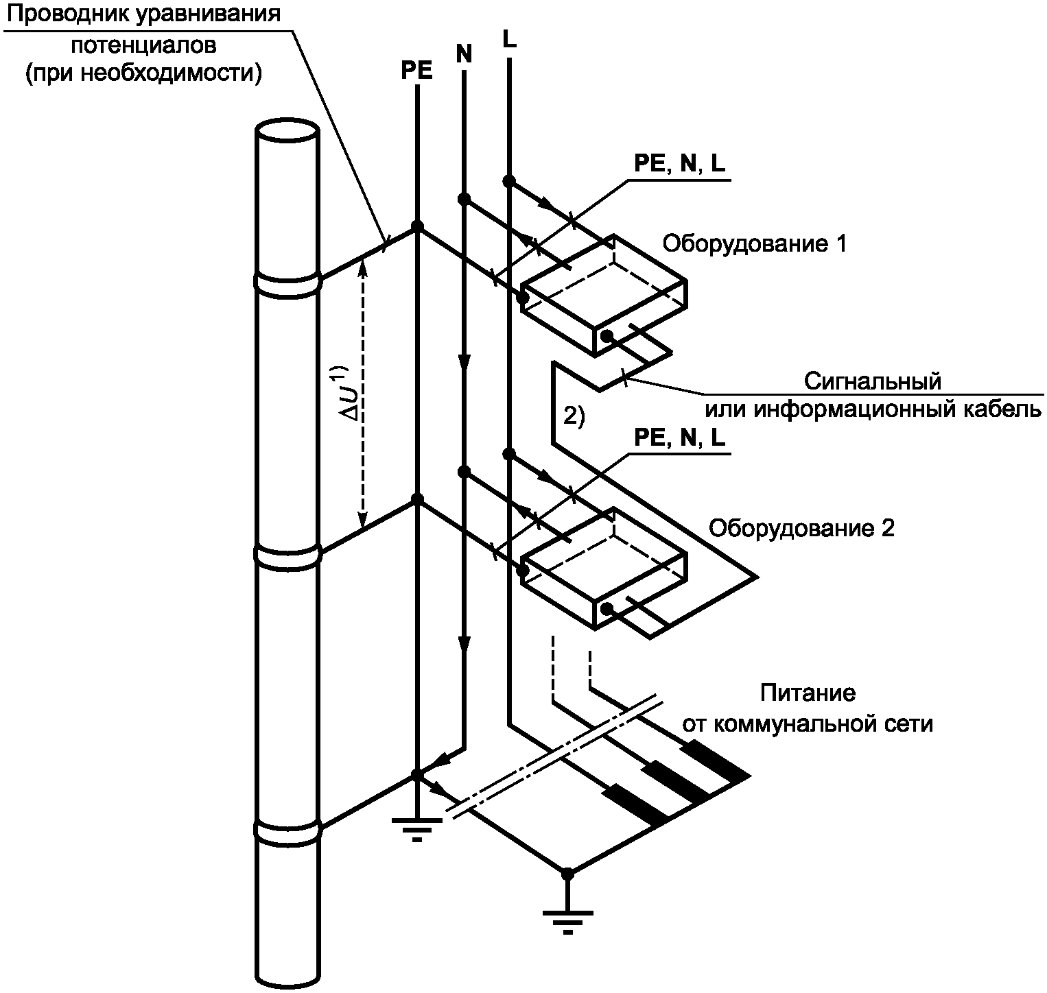 ГОСТ 30331.1-2013, раздел 1), несмотря на то, что перенапряжения и электромагнитные возмущения могут передаваться в электроустановки или между электроустановками через такие системы.