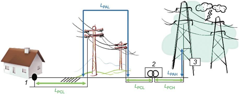 A.3 Пример 3. Здание в городской окружающей среде, получающее питание по воздушным линиям электропередачи
