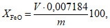 Восстановительная величина (ВВ), объем KMnO 4, см 3, пошедший на титрование (по 5.3) | Остаток, не растворимый в HCl (НО), % (по 5.1) | Кислотная растворимость (КР), объем NaOH, см 3, пошедший на титрование (по 5.2) | Оксид кальция (CaO), % (по 5.4) |