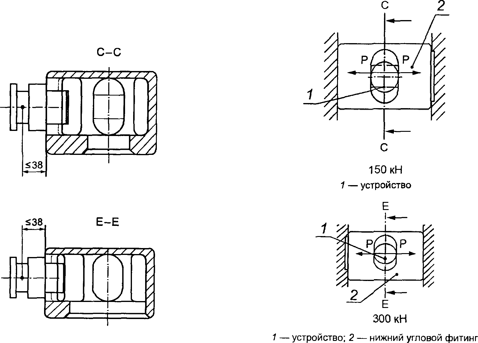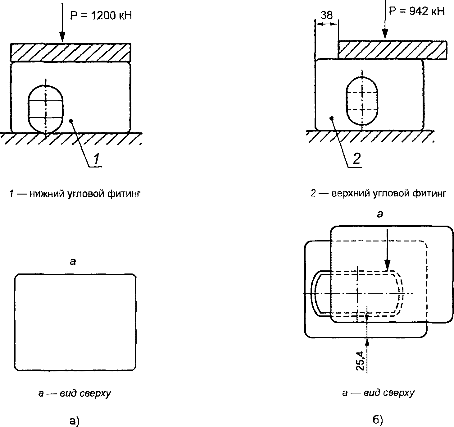 2. Каждый контейнер серии 1, кроме типа E, должен иметь два верхних правосторонних и два верхних левосторонних угловых фитинга.