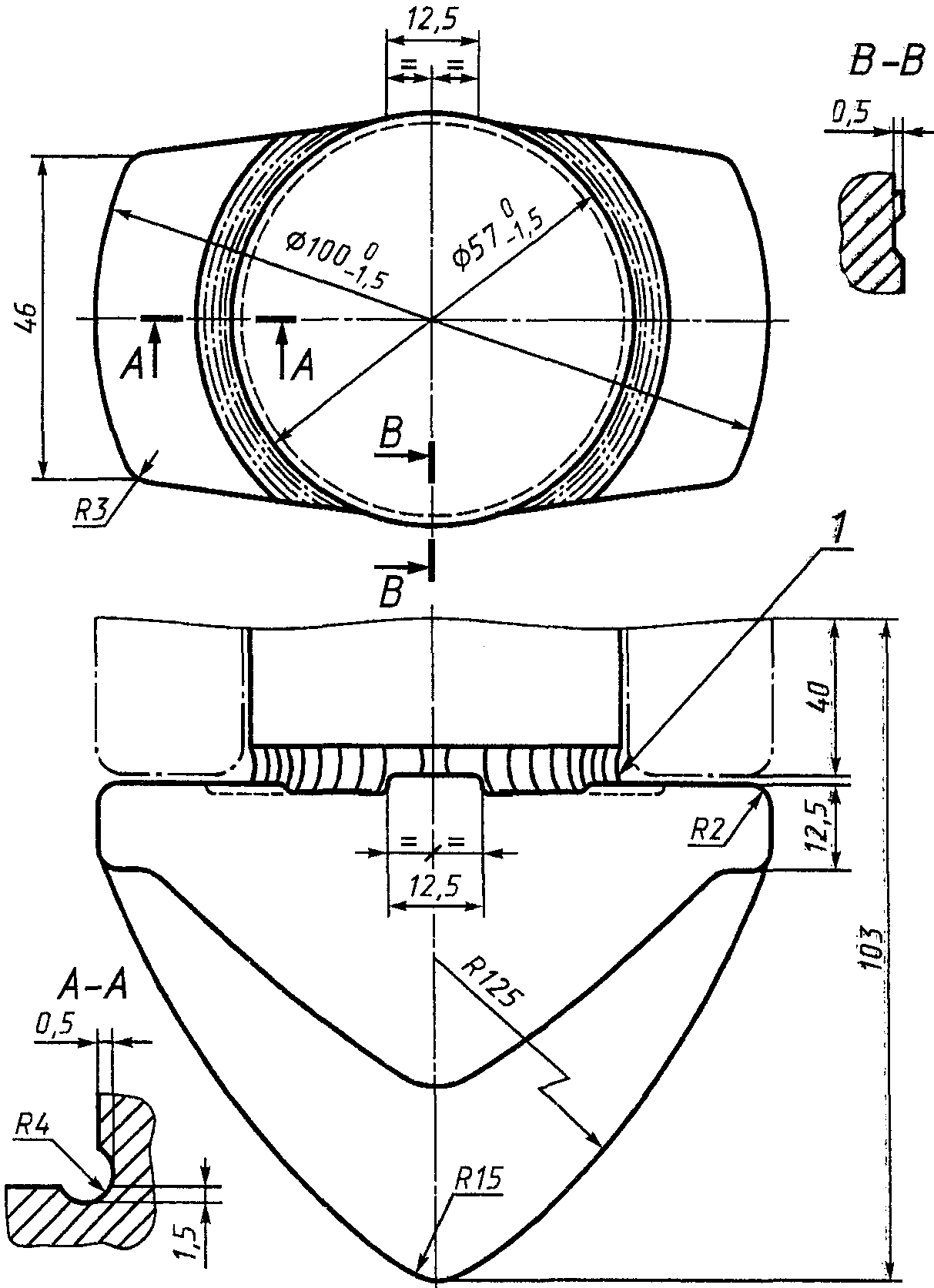 1 Сплошные и пунктирные линии обозначают обязательные элементы конструкции углового фитинга.