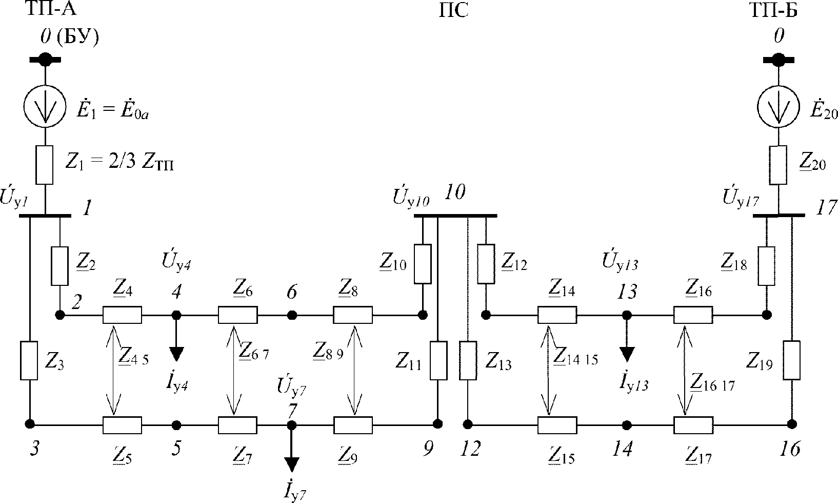 где [Yуij] - матрица узловых проводимостей Yуij, См, i = 1 ... Cу, j = 1 ... Cу;