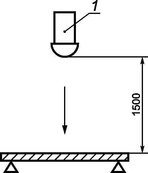 Выполняют удар бойком по поверхности элемента три раза в геометрическом центре с высоты падения 1,5 м, как показано на