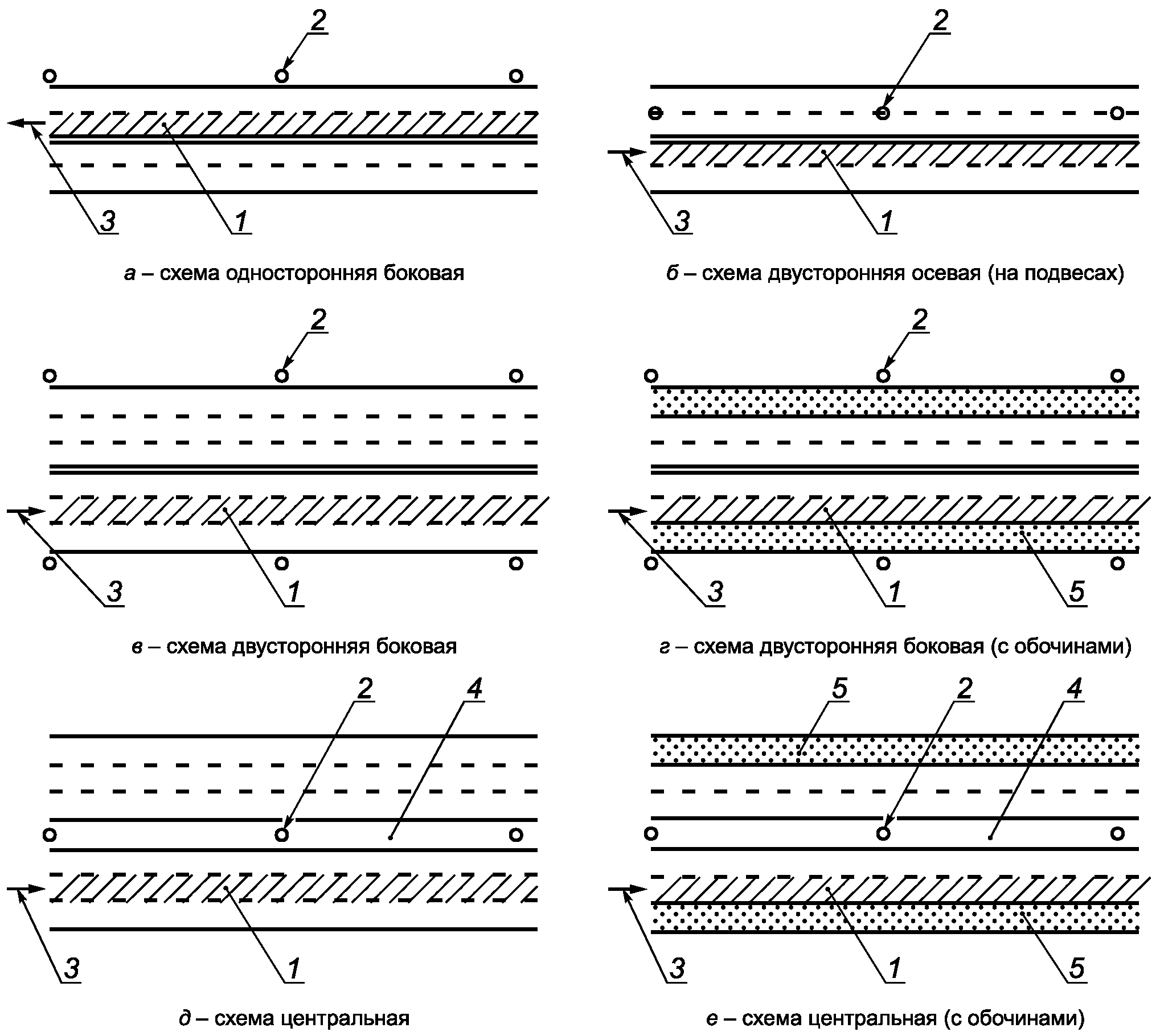 Примеры положения контрольной полосы в зависимости от схемы расположения ОП и геометрии дороги показаны на рисунке А.1.
