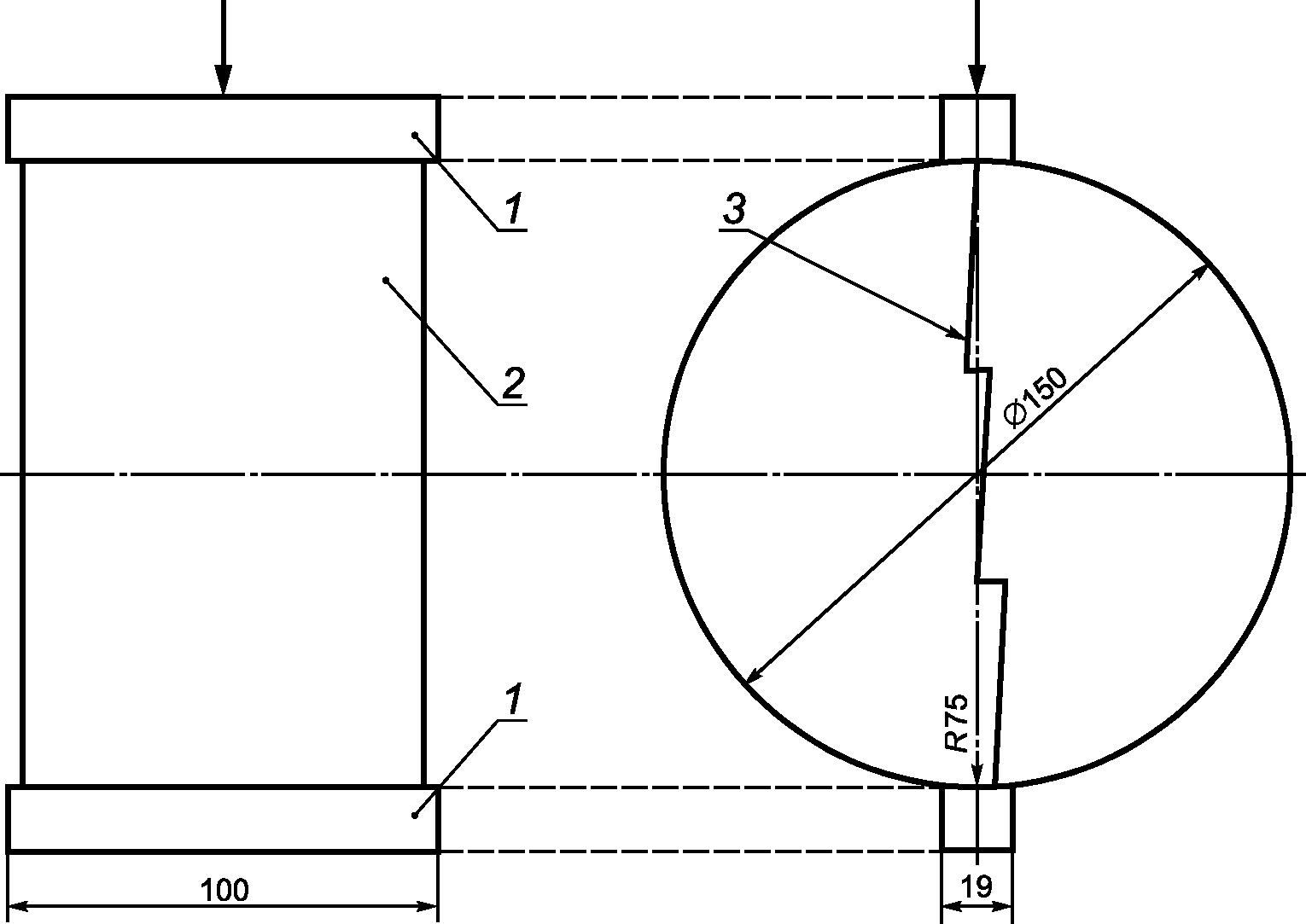 P, Н, при сжатии каждого образца, продолжая нагружение до полного разрушения образца на две части. При проведении испытания необходимо удостовериться в том, что нагрузку прикладывают строго по вертикальной диаметральной оси образца.