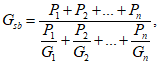 G1, G2, ..., Gn - объемные плотности каждого отдельного минерального заполнителя, входящего в состав асфальтобетонной смеси, г/см3;