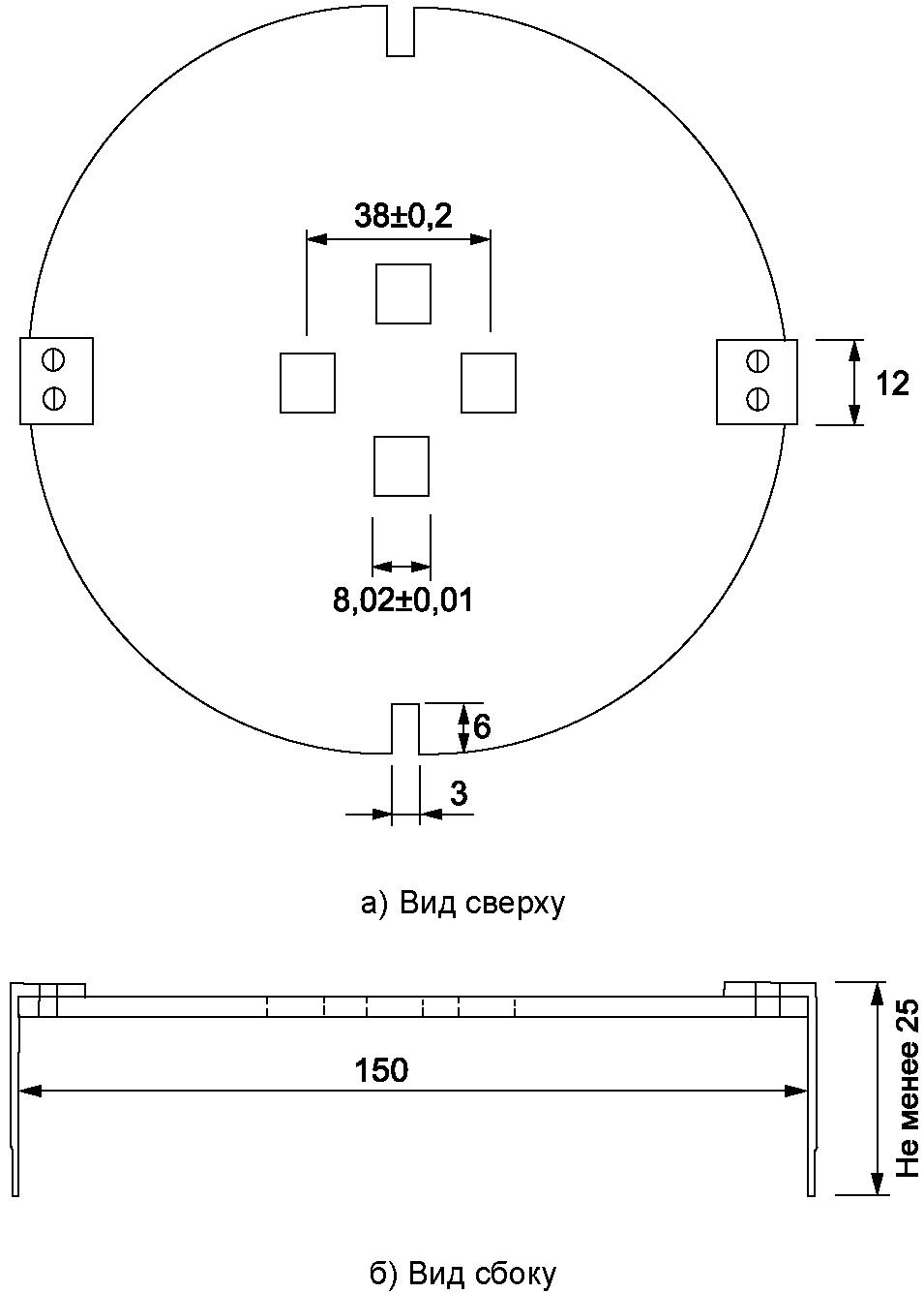 3.2 испытуемый образец: Образец цилиндрической формы диаметром (150 +/- 5) мм и высотой от 38 до 50 мм.