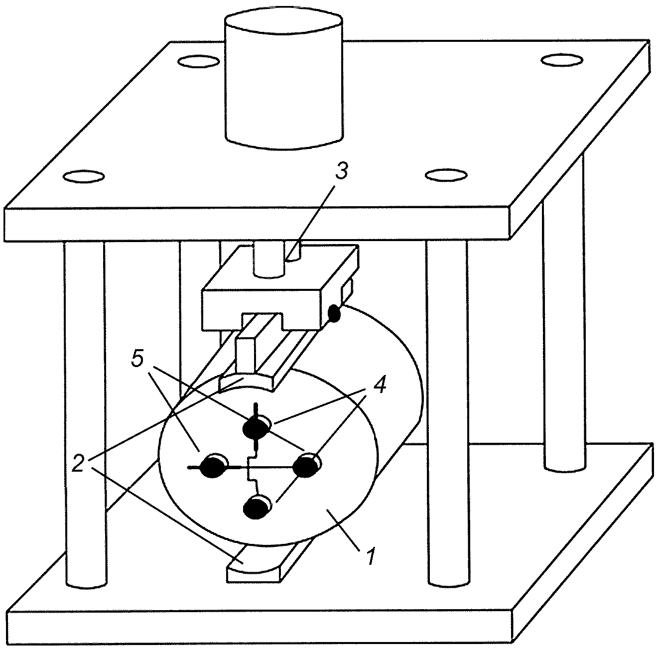 Определяют вертикальные и горизонтальные деформации на обоих торцах испытуемого образца, а также максимальную нагрузку.