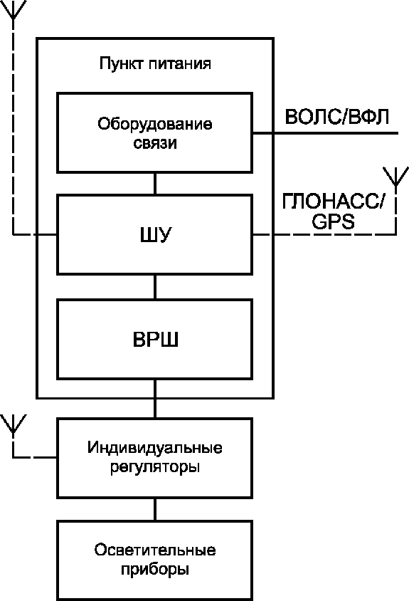3.1.6 пункты питания; ПП: Территориально распределенные пункты электропитания освещения дорог с техническими средствами, предназначенными для автоматизации технологических процессов контроля и управления осветительными установками, регулирования параметров осветительных установок, а также для обеспечения связи, контроля и управления объектами нижнего уровня при их наличии.